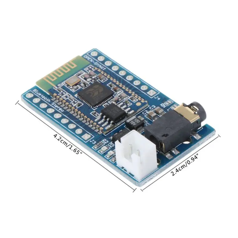 Особенности:Этот модуль Bluetooth специально разработан для продуктов bluetooth-динамиков.Просто поставьте питание для модуля и Подключите динамики наушники к разъему наушников на борту, чтобы вы могли сделать DIY bluetooth-динамик.При сопряжении вам не нужен пароль для подключения к модулю.Этот модуль также выводит Доступные контакты BK8000L, так что вы можете добавить микрофон и кнопки, чтобы сделать bluetooth гарнитуру для достижения bluetooth вызова.В командных функциях, таких как: отключение, ответ на звонки, отклонение звонков, Увеличение громкости, уменьшение громкости, воспроизведение предыдущей песни, воспроизведение следующей песни и т. Д.BK8000L только модуль Bluetooth плеера, другие аксессуары на фото не включены!Спецификация:Совместим с Bluetooth 2,1 + EDR.A2DP v1.2, AVRCP v1.0 и HFP v1.5 профиль.Интегрированный стерео ADC и стерео DAC.Рабочее напряжение: на возраст размер на 4-12 вольт постоянного тока (бортовой 3,3 V регулятор цепи)Рабочий ток: 65ма (макс.)Бортовой 3,5 мм двухканальный для наушниковБортовой интерфейс XH2.54mm-2P для источника питанияРазмеры: 4,2x2, 4 см/1,65x0,94 дюймаКоличество: 1 шт.Посылка включает в себя:1 x модуль Bluetooth плеера BK8000L (без розничной упаковки)