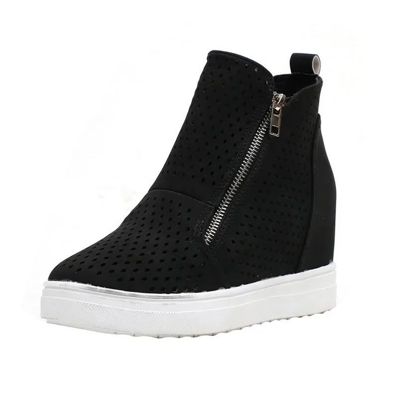 Кроссовки женские из ПУ кожи, Вулканизированная подошва, высокие берцы, платформа, повседневная обувь на танкетке, весна-осень