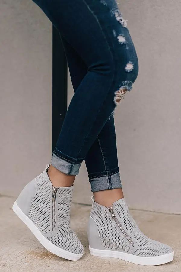 Женские ботильоны на танкетке, Вулканизированная подошва, на молнии...