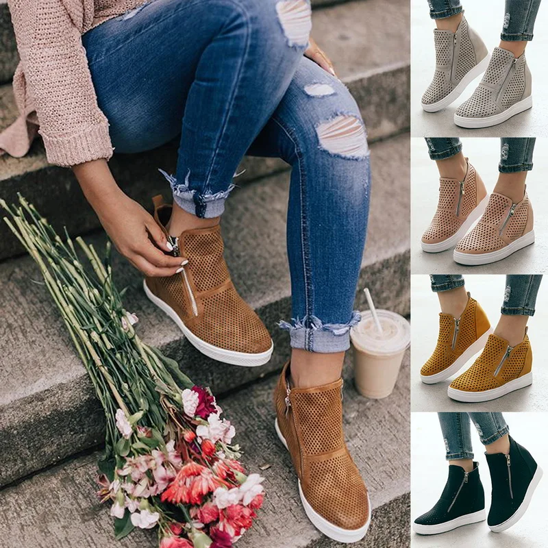 Весенние женские ботинки, женские ботинки на платформе с вырезами, ...