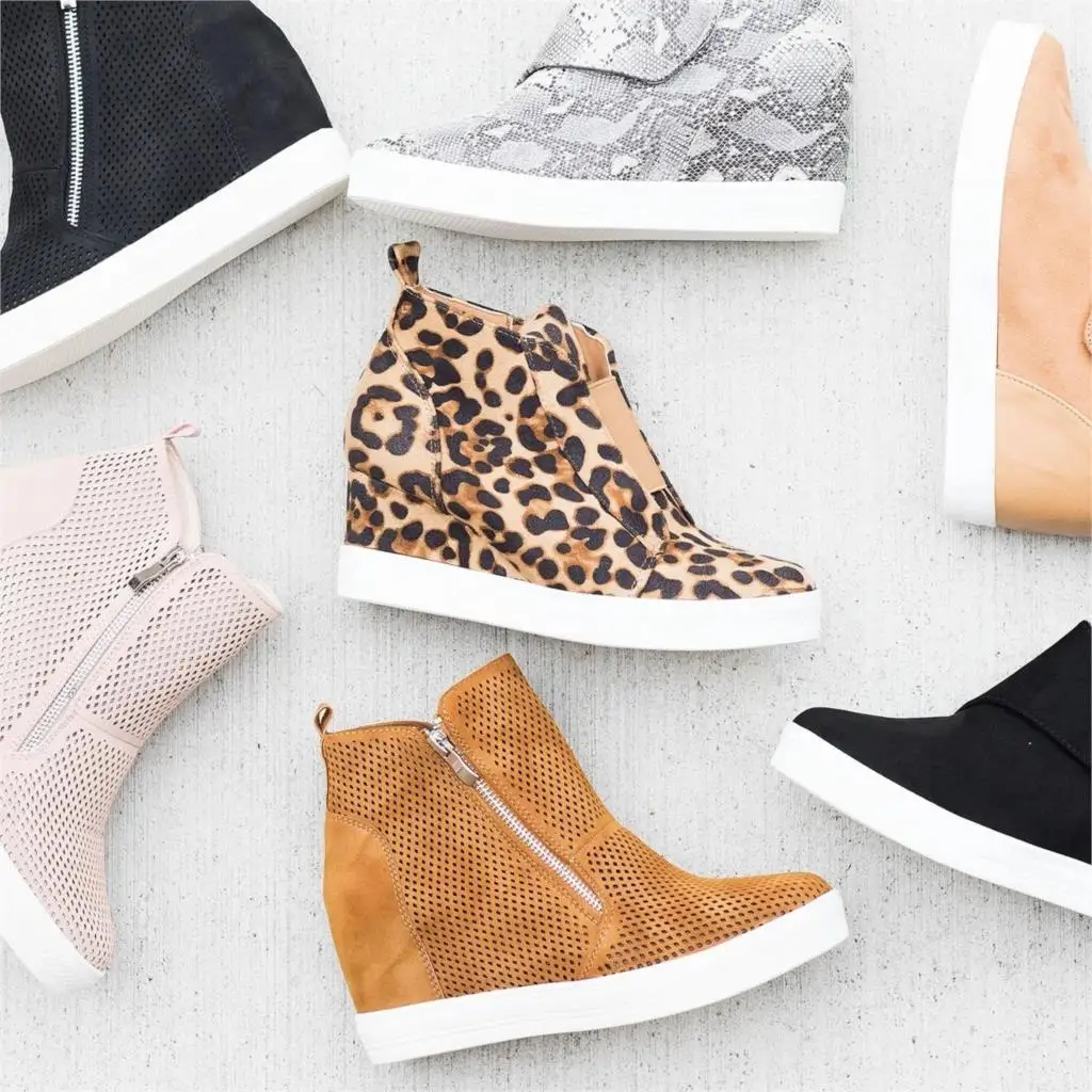Кроссовки женские на танкетке, вулканизированные, на молнии, леопар...