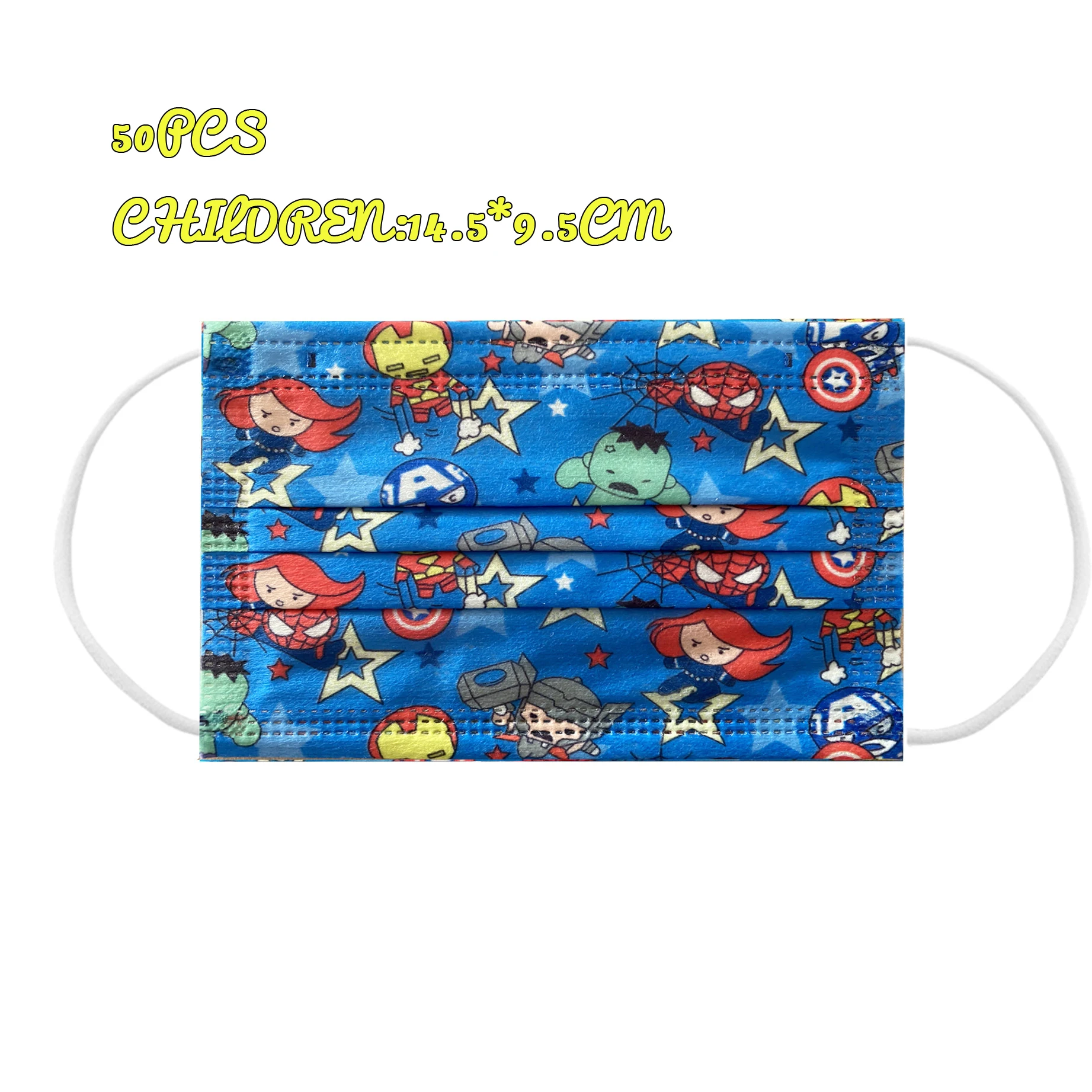 50 шт. мультяшная одноразовая маска для лица 3-слойные противопылев...