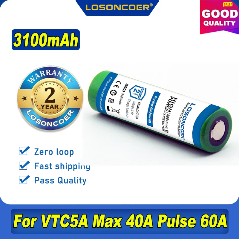 LOSONCOER 3100 мА/ч, Макс 40A импульсный 60A 3,6 V Батарея 18650 Перезаряжаемые VTC5A Высокая утечка 40A Батарея