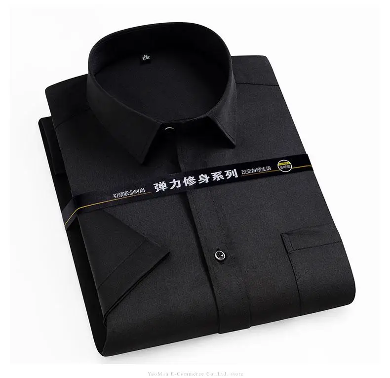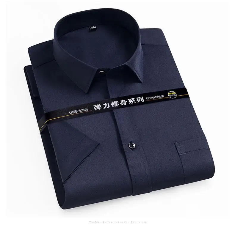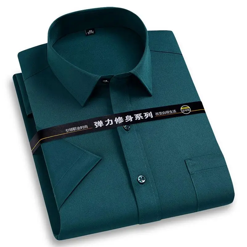 Мужская рубашка с коротким рукавом, однотонная, стрейчевая, лето