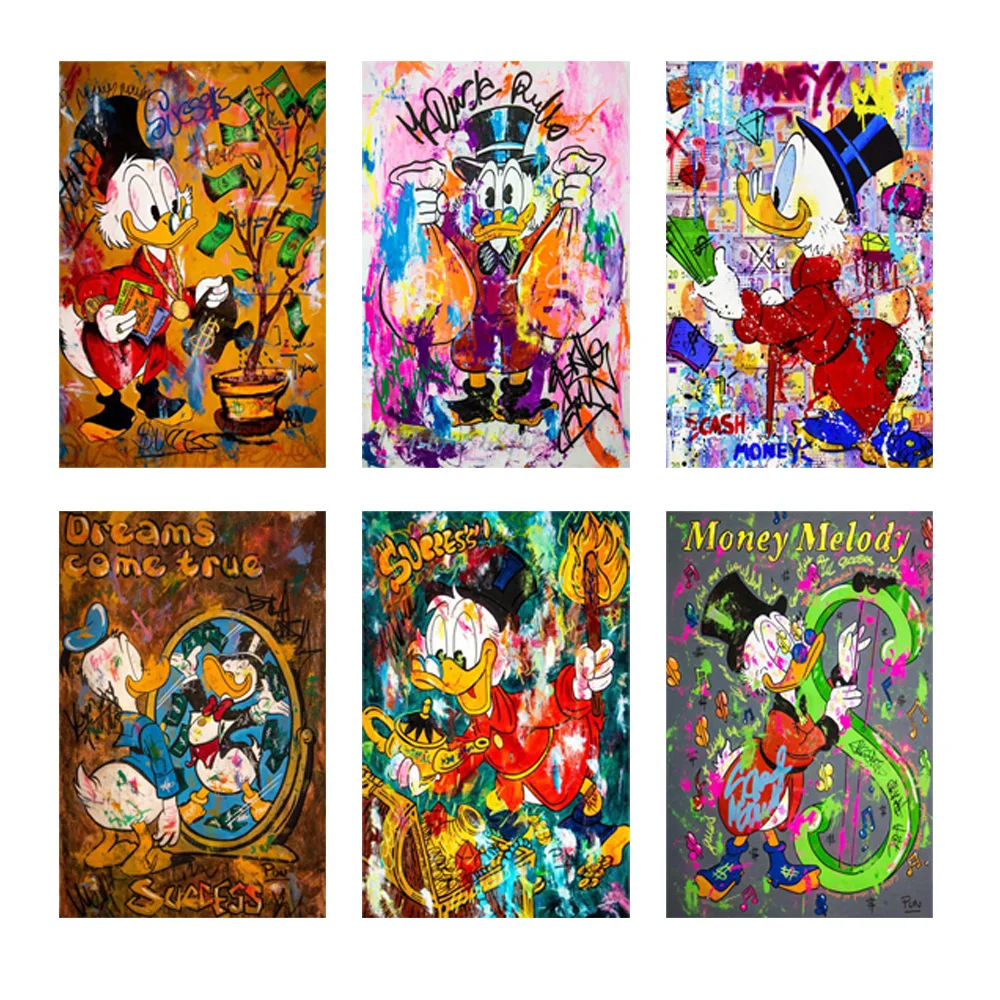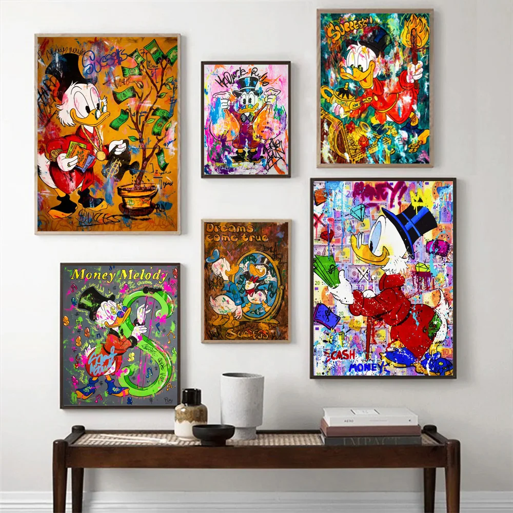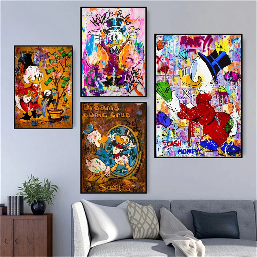 Деньги-алчным Дональд Дак Disney мультфильм Картина на холсте Плакаты и печать денег за сокровищами фон с изображением граффити на стене искусство картина без рамки