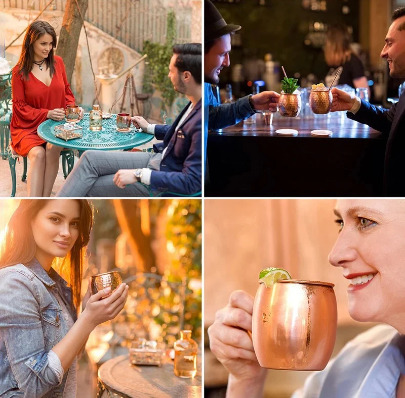 3. Подходит для любителей напитков: чашка с роскошными медными поверхностями Выглядит блестящей, ретро и элегантной. Особенно подходит для любителей коктейлей и холодных напитков. Каждая медная чашка может быть красиво украшена в любом месте.