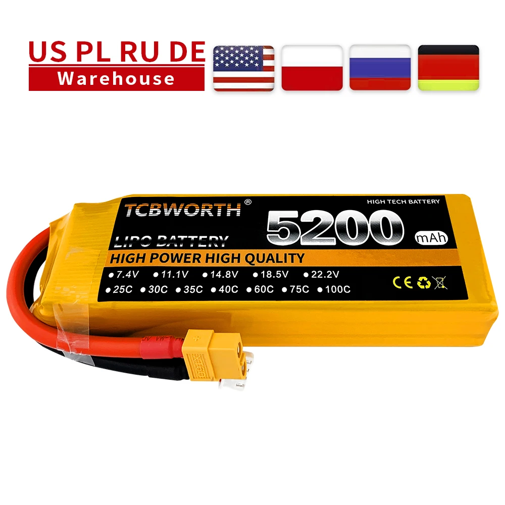 Литий-полимерный аккумулятор TCBWORTH 3S, 11,1 В, 5200 мА ч, 25C, 35C, 60C, для самолета на радиоуправлении, вертолета, квадрокоптера, автомобиля, лодки, дрона