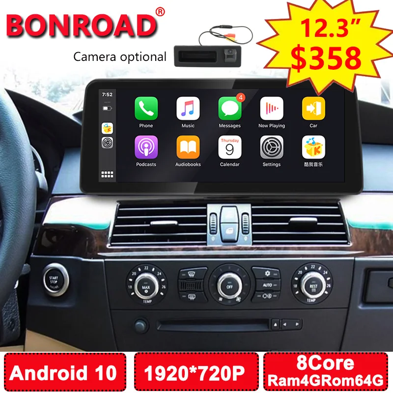 Автомобильный мультимедийный плеер для BMW 5, мультимедийный плеер с экраном 12,3 дюймов, 1920*720P, IPS, 4 Гб ПЗУ, 64 ГБ для BMW 5, E60E61, CCCCIC BT, Wi-Fi, радио, 4G, LTE, GPS