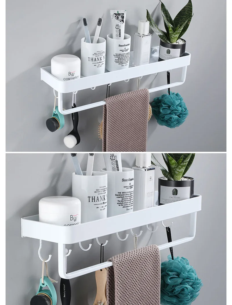 Алюминиевая белая полка для ванной комнаты, настенные полки для шампуня и душа, держатель, кухонная полка для хранения, вешалка для полотенец, аксессуары для ванны