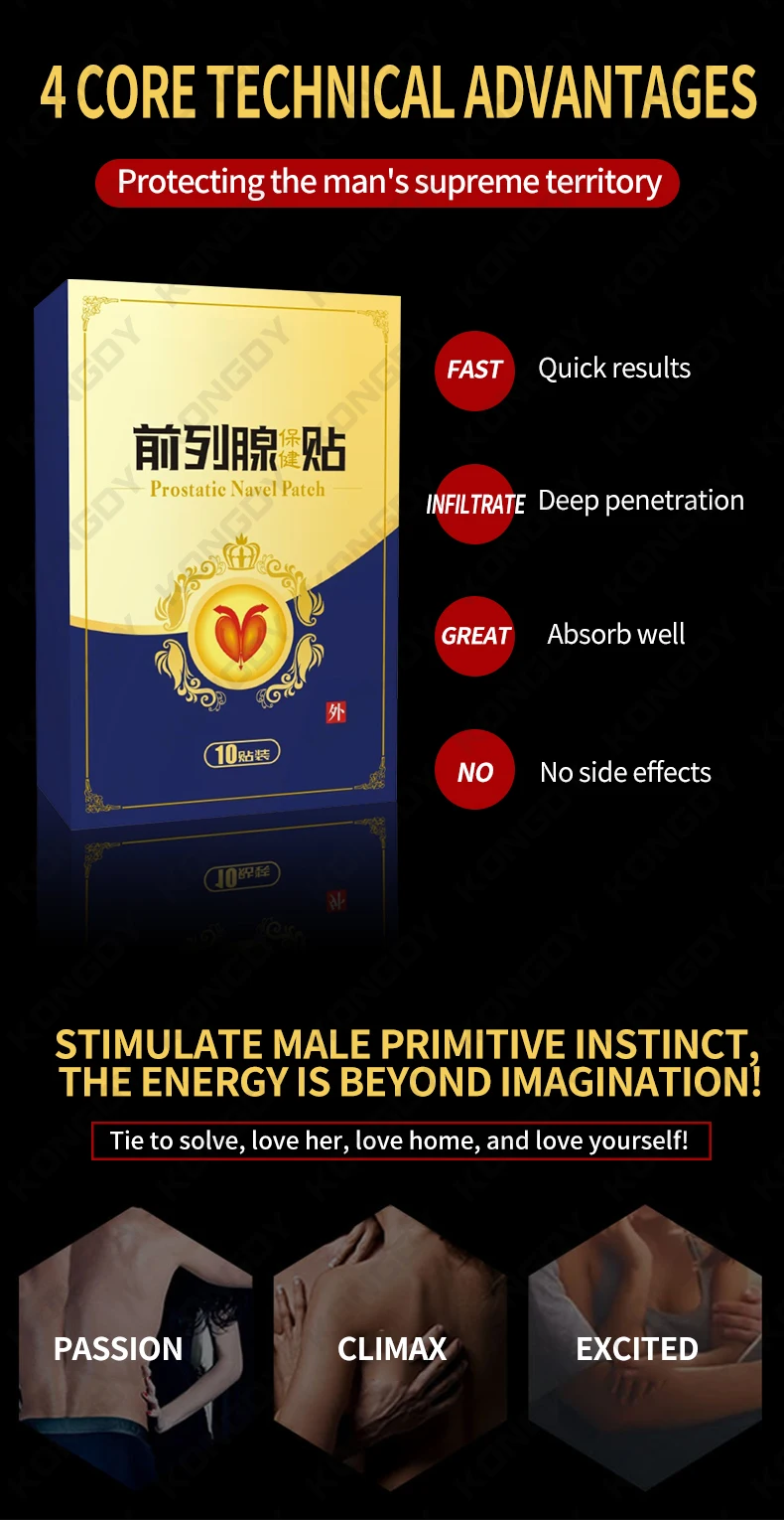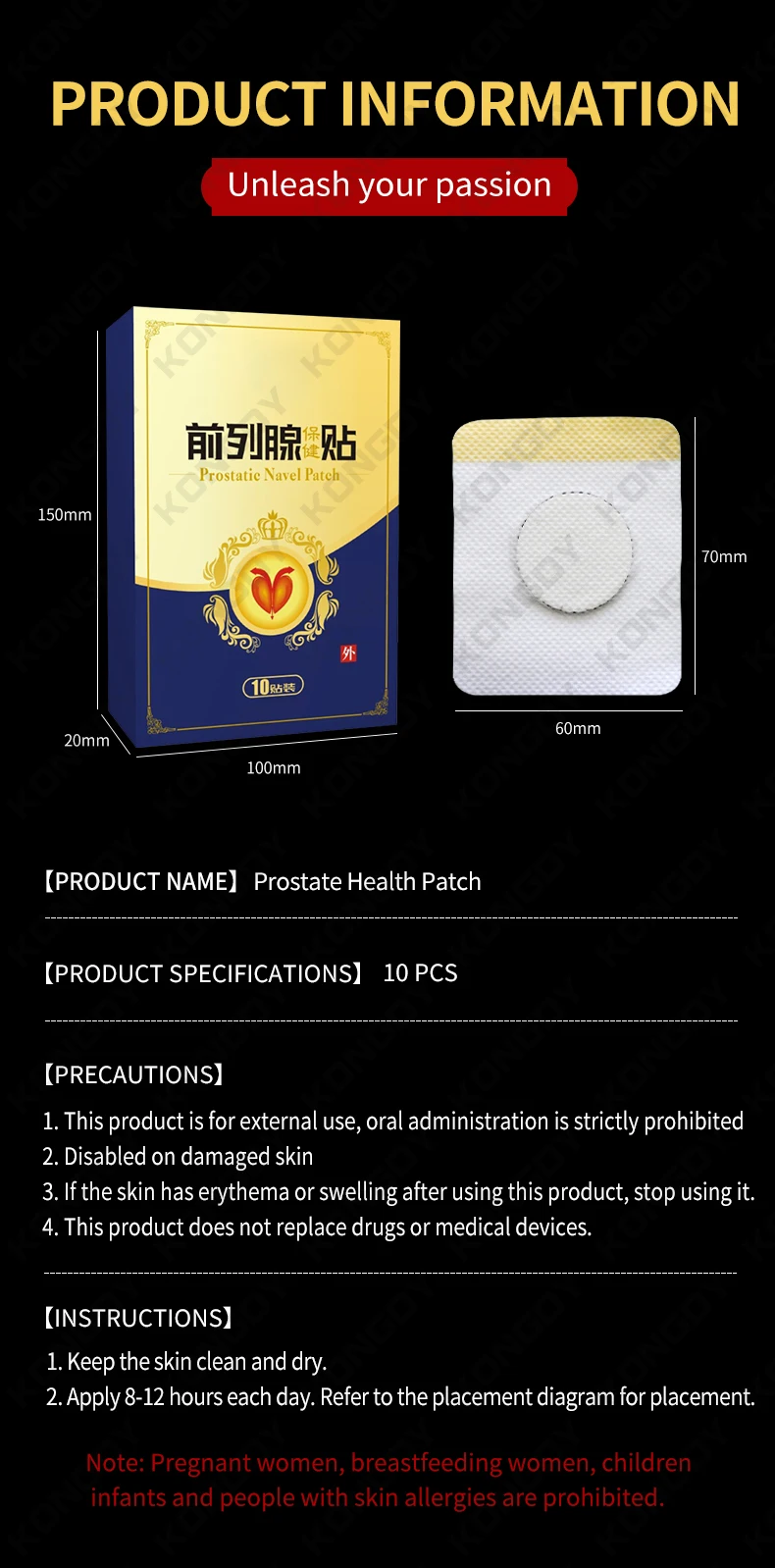 Процедура лечения пластыря предстательной железы 1. Очистите область пупка водой 2. Откройте чехол 3. Достаньте пластырь и снимите прикрепленную бумагу с одной стороны 4. Нанесите гипс своей клейкой стороной вниз на пупок 5. Один пластырь используется для 4-8часов. 6. Лучшие результаты достигаются после 2-3 процедур (10-15 пластырей)