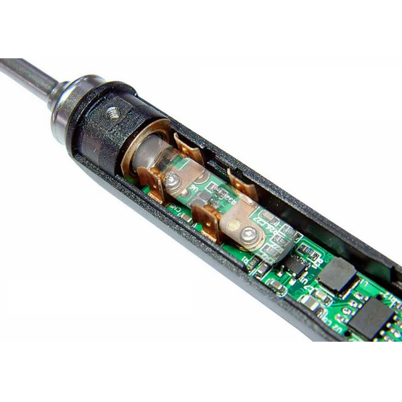 -Мини-паяльник TS100-это внутренний нагреваемый Интеллектуальный паяльник с цифровым управлением, легкий дизайн, простота установки и использования, простота в разборке и хранении, с удобной ручкой управления, эффективный нагревательный конец и простой интерфейс управления.-Он может работать между 12-24 В постоянного тока, с oled-экраном, регулировкой температуры кнопки и внешним независимым источником питания. В состоянии DC 19V 40W температура может расти до 300 ℃ в 15 секунд.