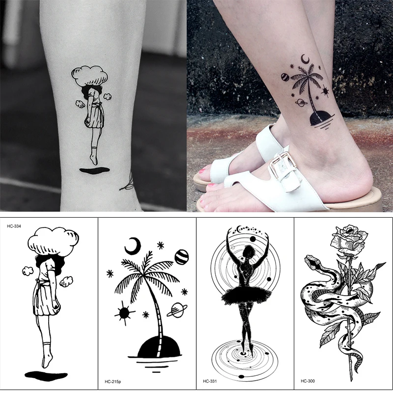Новые водостойкие Временные татуировки черного цвета, модные минималистские крутые летние сексуальные накладные татуировки на грудь, спину, лодыжку, боди-арт, оптовая продажа