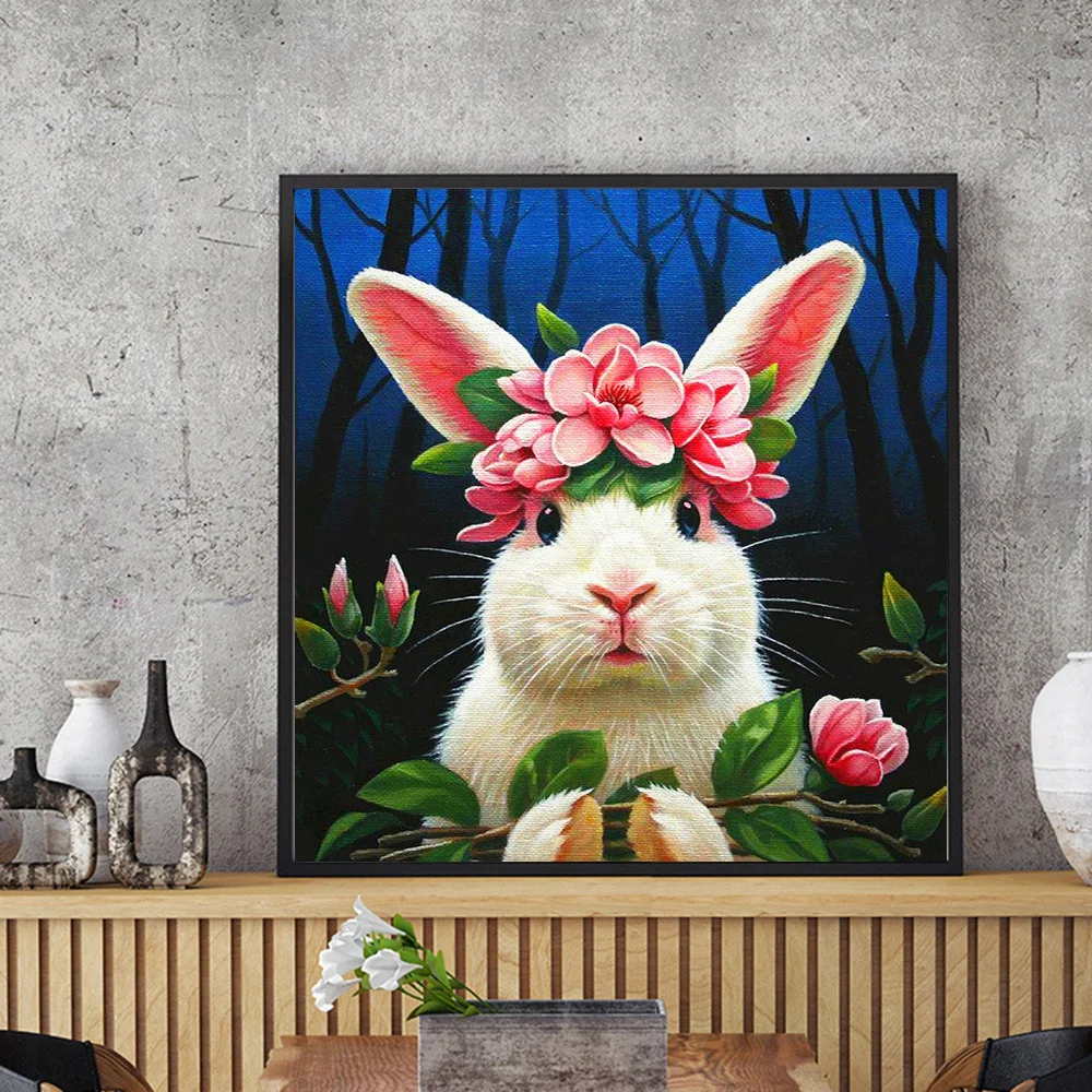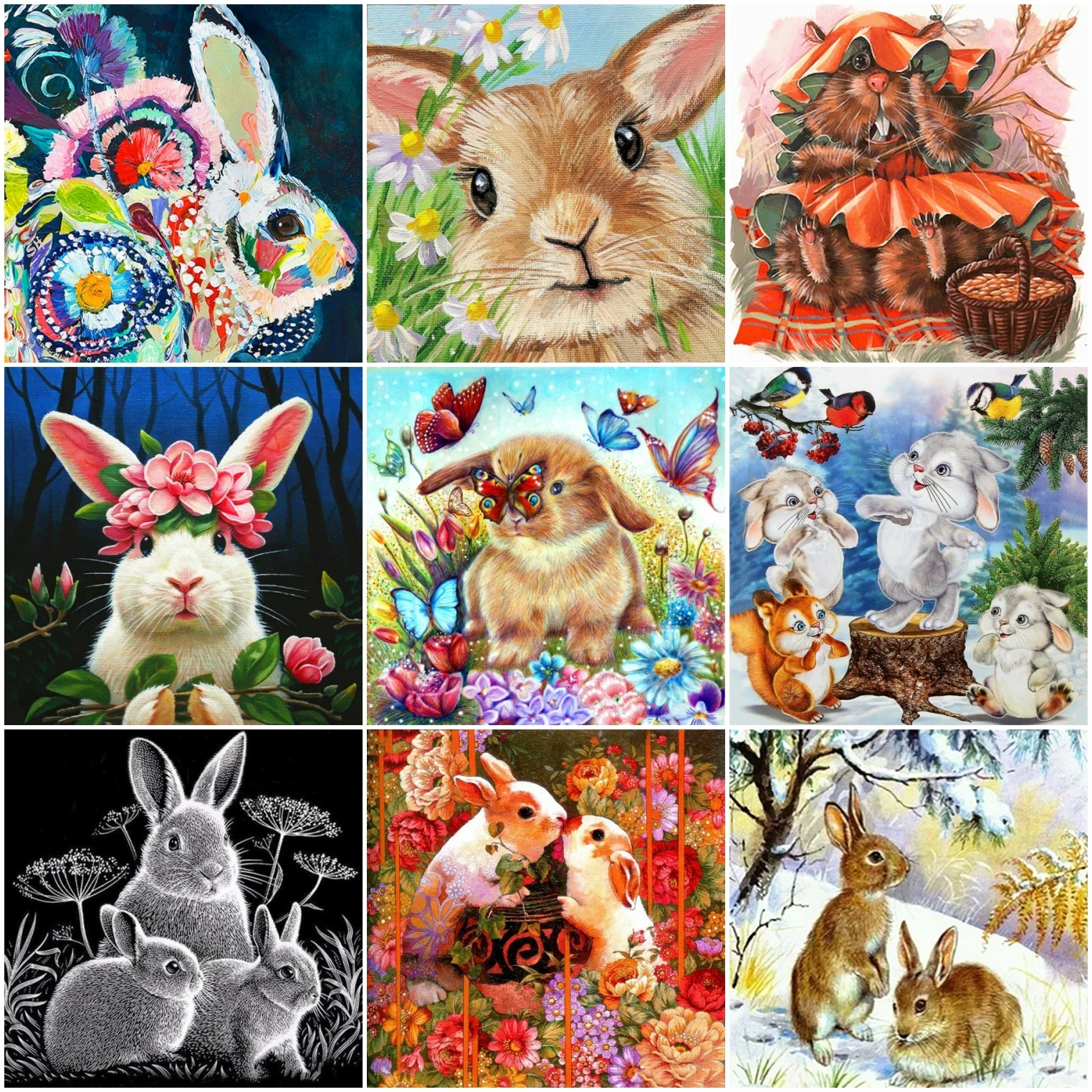 Алмазная вышивка AZQSD, мозаика с кроликом, цветком, картина стразы, животное, вышивка крестиком, домашний декор