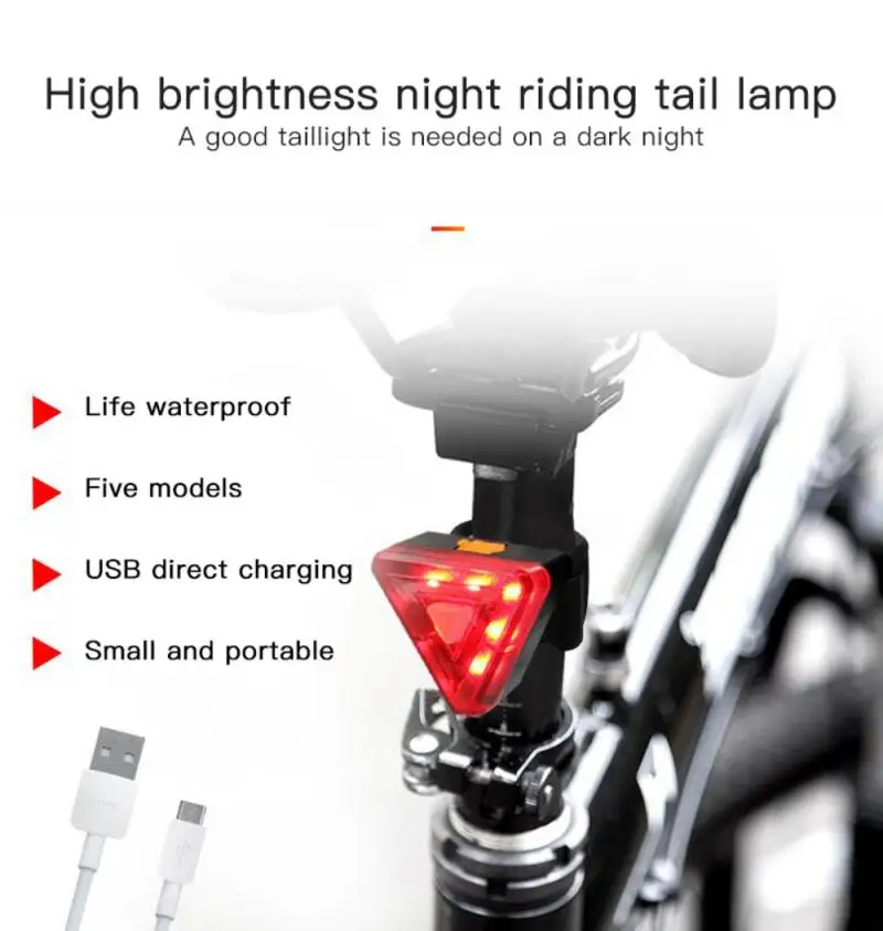 Треугольный велосипедный задний фонарь, светодиодный, зарядка через USB, пять режимов
