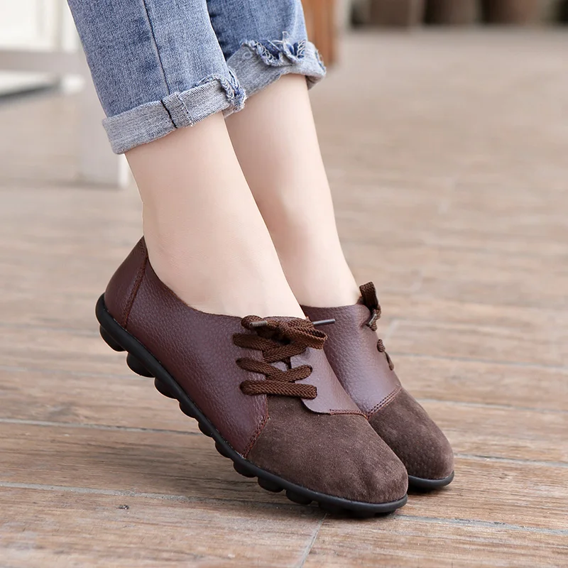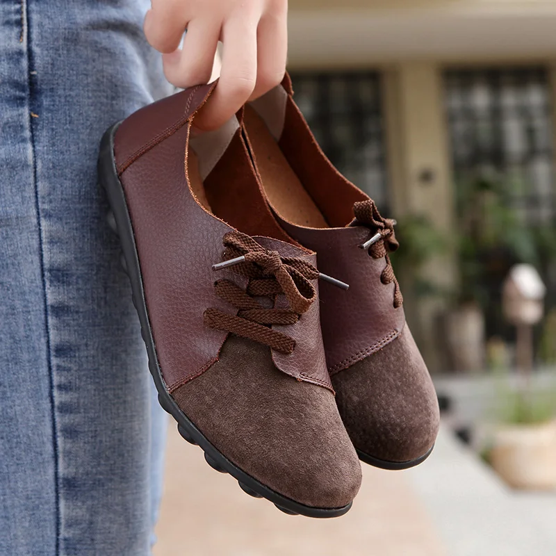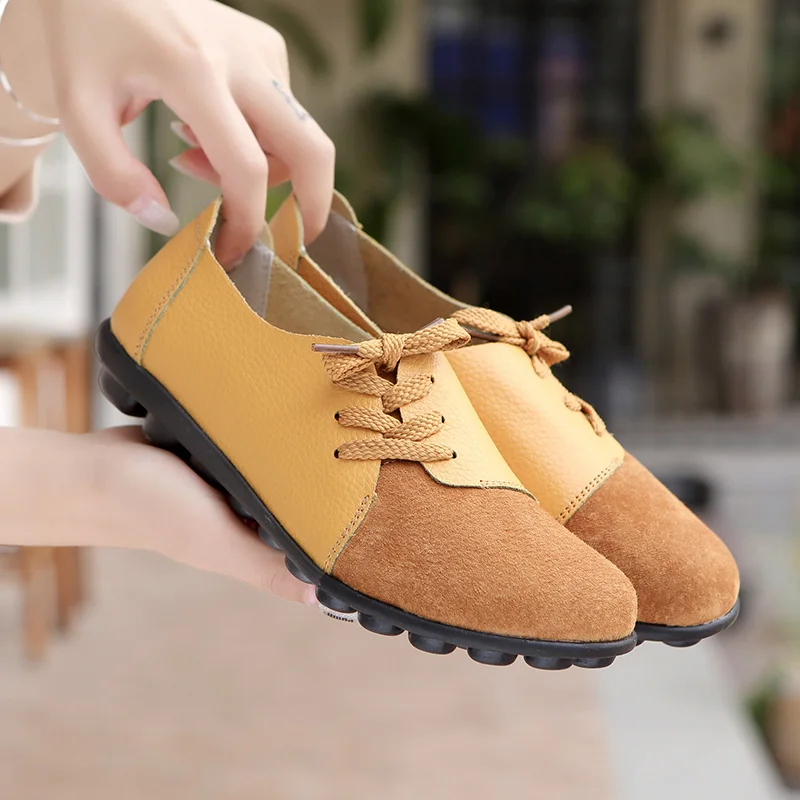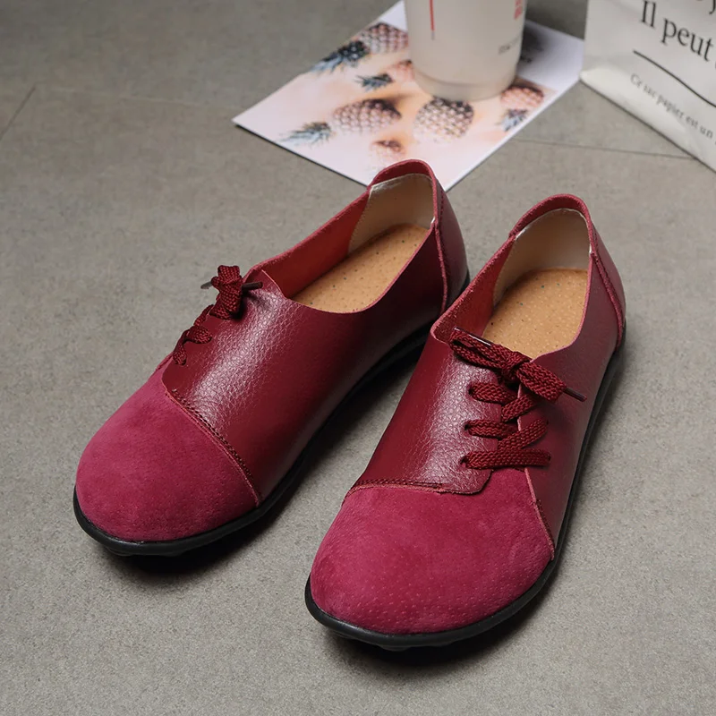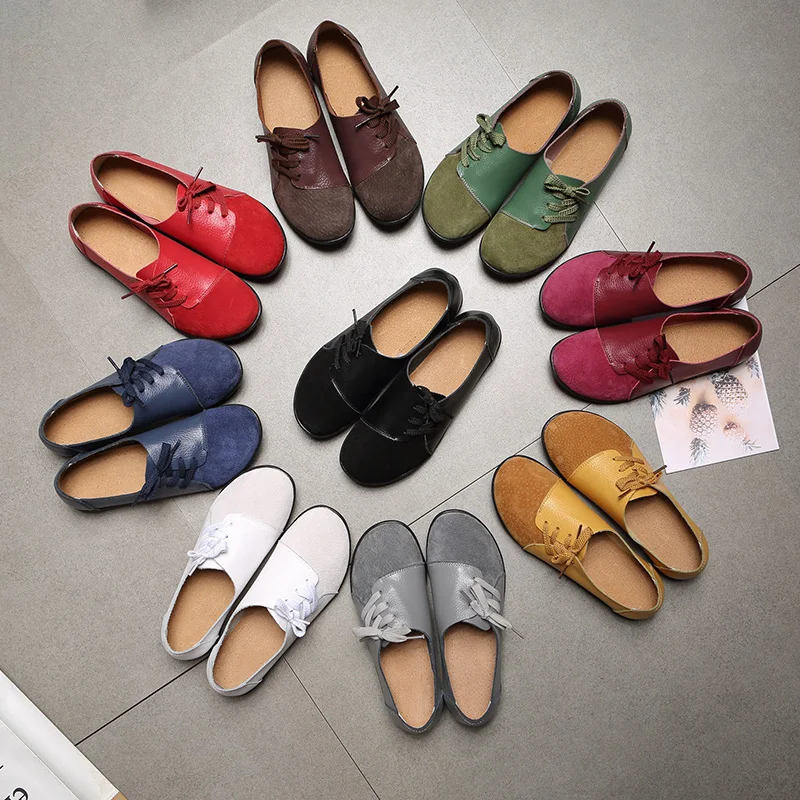 Обувь из натуральной кожи женская повседневная обувь красочные спортивная обувь женские ботинки на шнуровке, на шнуровке, обувь на плоской подошве; Женские легкие Мокасины размера плюс; Большие размеры 35-44
