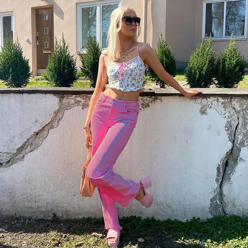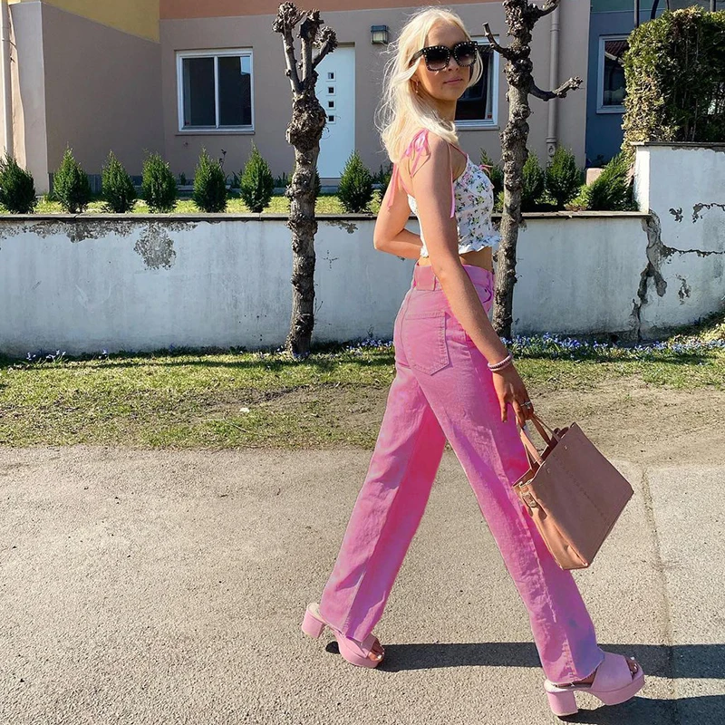 Уличная одежда, трендовые джинсы для женщин, новинка, модные базовы...