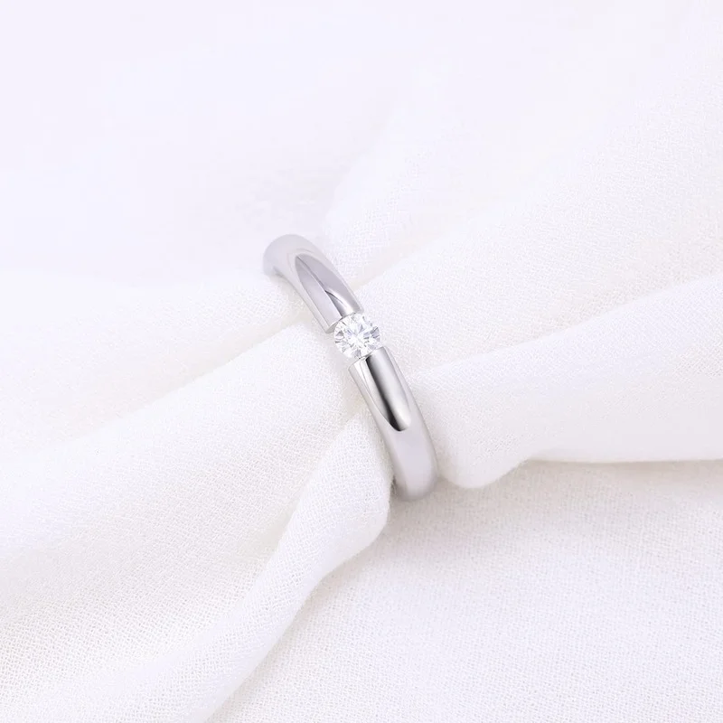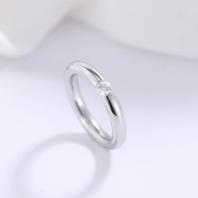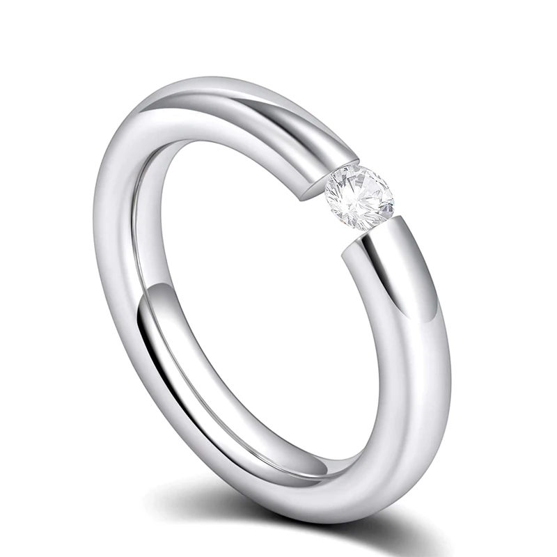 EAMTI 4 мм кольца из нержавеющей стали для женщин девушек Полированное Серебро Круглый солитер CZ кубический цирконий обручальное кольцо