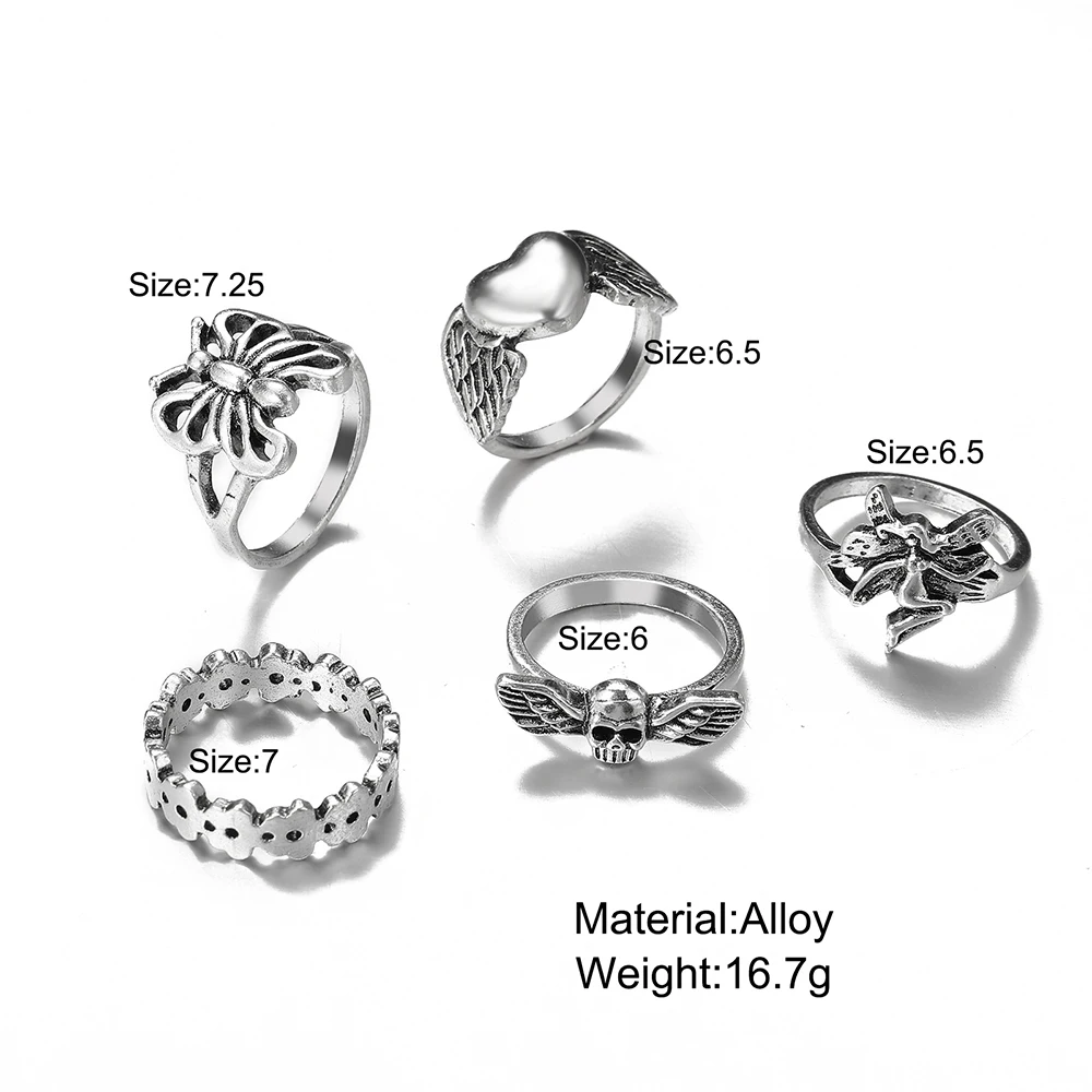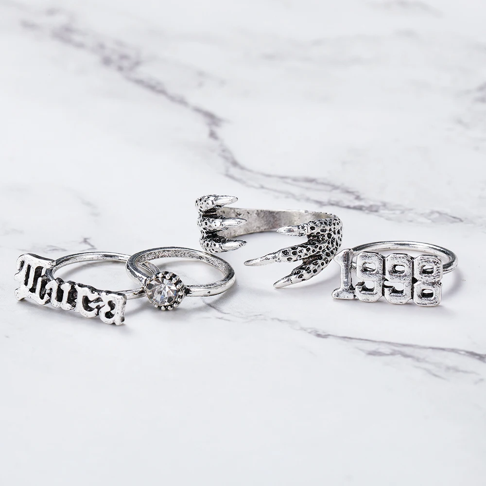 Комплект колец в готическом стиле для женщин и девушек, открытый ге...