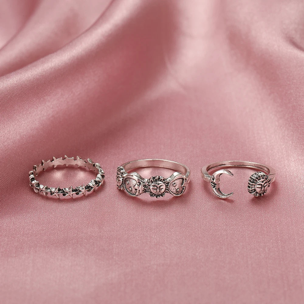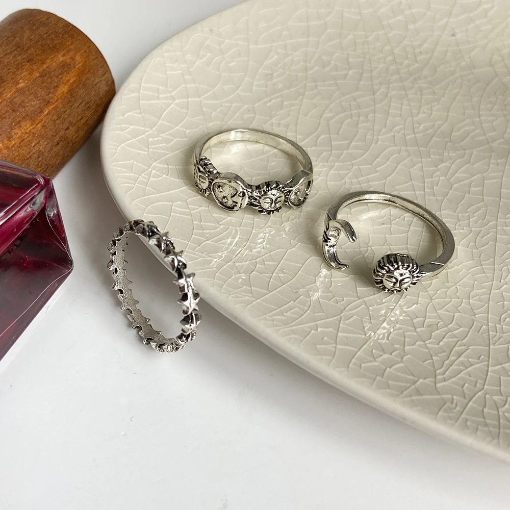 Набор колец в этническом стиле для мужчин и женщин, модные кольца в форме солнца, Луны, звезды, с открытым лицом, ювелирные изделия в подарок