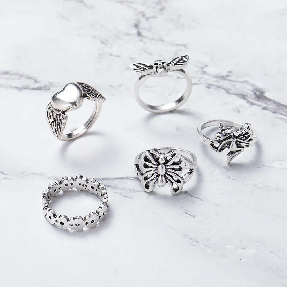 Панк готический серебряный цвет кольцо на палец с бабочкой набор дл...