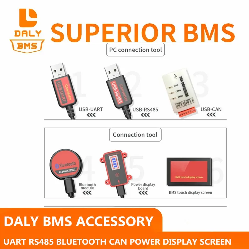 ◆ CAN-USB должны быть настроены с BMS при производстве. Так что заказ не может быть неделим без заказа BMS.◆UART Bluetooth и LCD имеют один и тот же контакт, поэтому не могут использовать эти 3 аксессуары в то же время;
