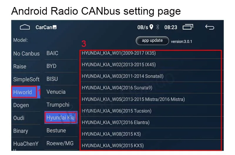 Дружеское напоминание: -- Если вы не знаете, как управлять Радио Android, чтобы войти в заводские настройки, пожалуйста, обратитесь к инструкции Android радио или проконсультируйтесь с продавцом Android радио. -- Если вы не знаете пароль для установки на Android radio factory, пожалуйста, обратитесь к инструкции Android radio или обратитесь к продавцу Android radio. -- При настройке canbus, если ваша модель автомобиля не обнаружена, пожалуйста, выберите другую модель того же бренда или проконсультируйтесь с продавцом Android radio.