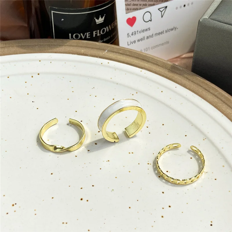 Модный минимализм цепи регулируемые Открытые Кольца для женщин, для девушек и женщин, зеленый золотой цвет эмали металла указательный палец кольцо комплект ювелирных изделий