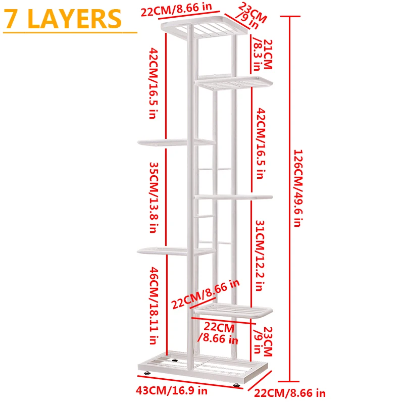 Посылка включает в себя:1 x подставка для цветов (за исключением других украшений)1 х руководство на английском языкеНадеюсь на хороший день!Особенности товара:Материал: железоЦвет: белый, черныйВместимость: 6/7/8/9 цветы в горшкеОбщий размер: (Д) X (Ш) X (В)Особенности:● Прочный, безопасный, легко чистится и снимается.● Создание привлекательных дисплеев цветов в горшке.● Идеально подходит для патио, веранды, офиса и балконов.● Красивый дизайн в горшке для любителей дома и сада.● Придайте вашему дому, палубе или патио идеальное сочетание ретро-стиля и естественной красоты с этой очаровательной подставкой для плантаторов.● Требуется домашняя сборка.Примечание:1. Допускается погрешность в 1-3 см из-за ручного измерения. Перед размещением заказа, пожалуйста, внимательно ознакомитесь со всеми условиями.2. Цвета могут отличаться, так как на дисплее разница, пожалуйста, поймите.