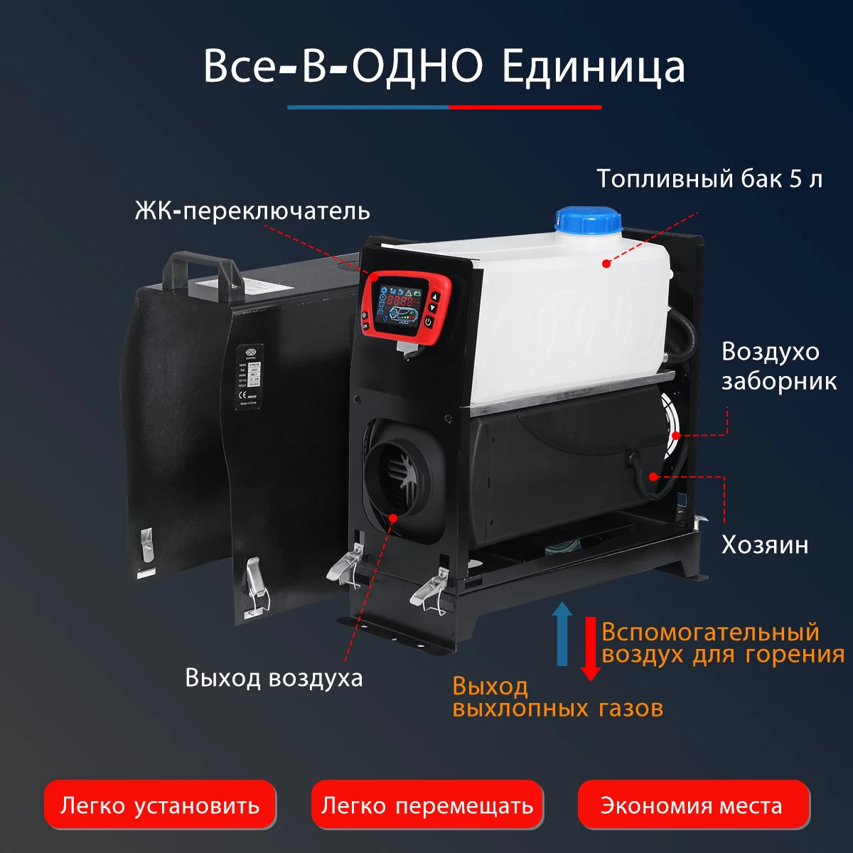 Особенности-Все в одном блоке, экономит место и легко перемещается.-Простота установки, удаления и обслуживания.-Избавьтесь от повреждения автомобиля, вызванного резким падением температуры.-Низкий уровень шума: снижение уровня шума при минимальном уровне шума.-Простая установка: компактный дизайн хорошо подходит для использования в различных узких пространствах.-Низкое потребление топлива и энергии в течение более длительного периода эксплуатации.-Плавный, автоматический комнатный контроль температуры с предварительной установкой температуры.-С непрерывным мониторингом и диагностической системой.-Топливо поставляется из собственного бака транспортного средства.-Применимо к: различным дизельным механическим транспортным средствам, таким как автомобили, автобусы, RVs, грузовики, инженерные транспортные средства и т. д.