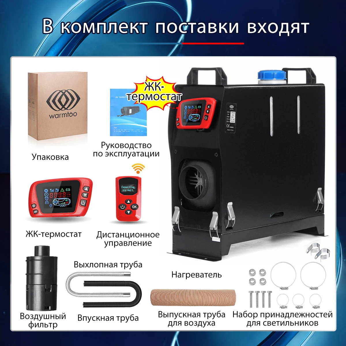Автомобильный обогреватель Warmtoo, универсальный дизельный воздушный отопитель с 1 отверстием, 8 кВт, 12 В, с ЖК-дисплеем, для грузовиков, автодомов, лодок, автобусов