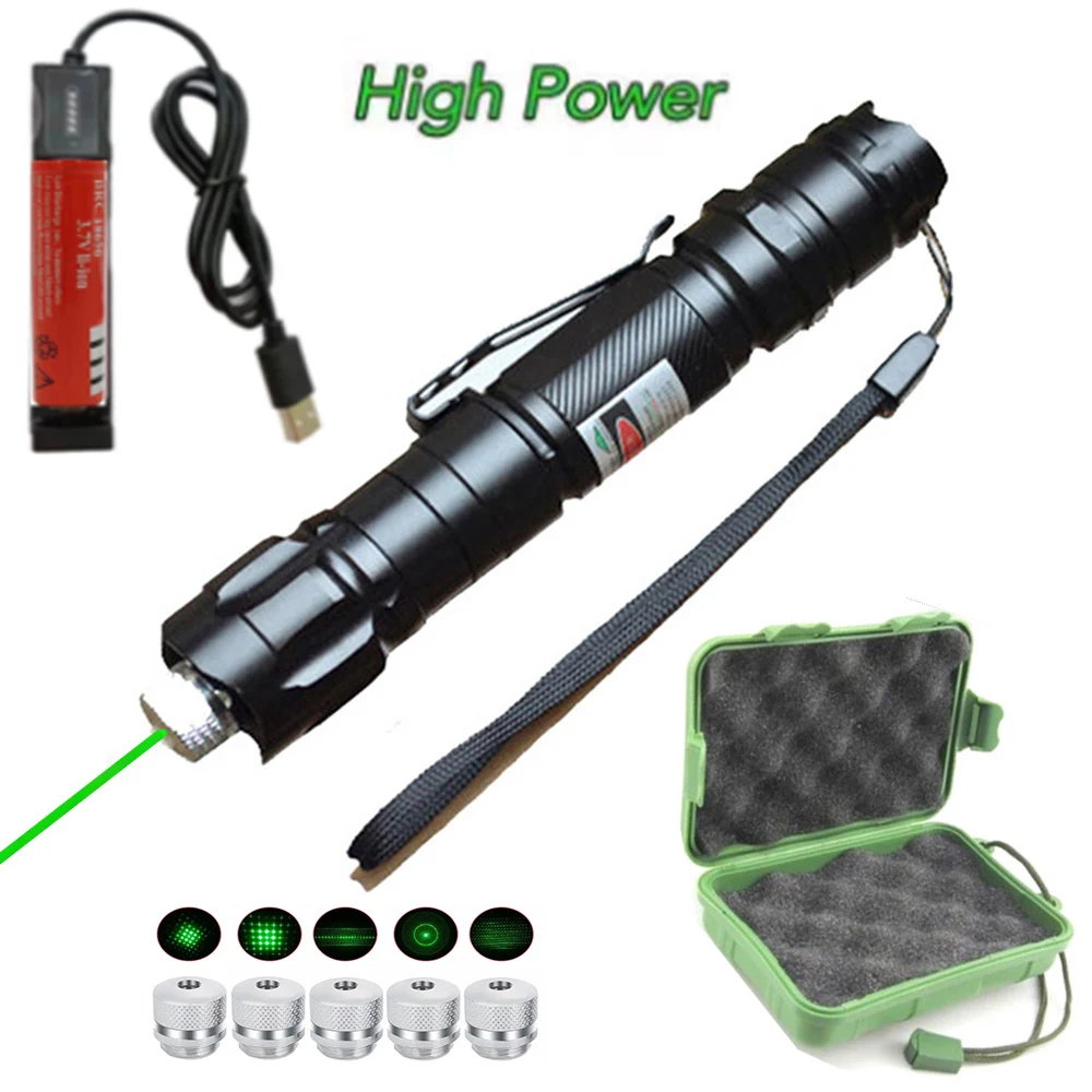 Мощный зеленый лазер 5 мВт Мощный лазерный фонарик с регулируемым фокусом Лазерная крышка USB зарядное устройствокоробка комбинация