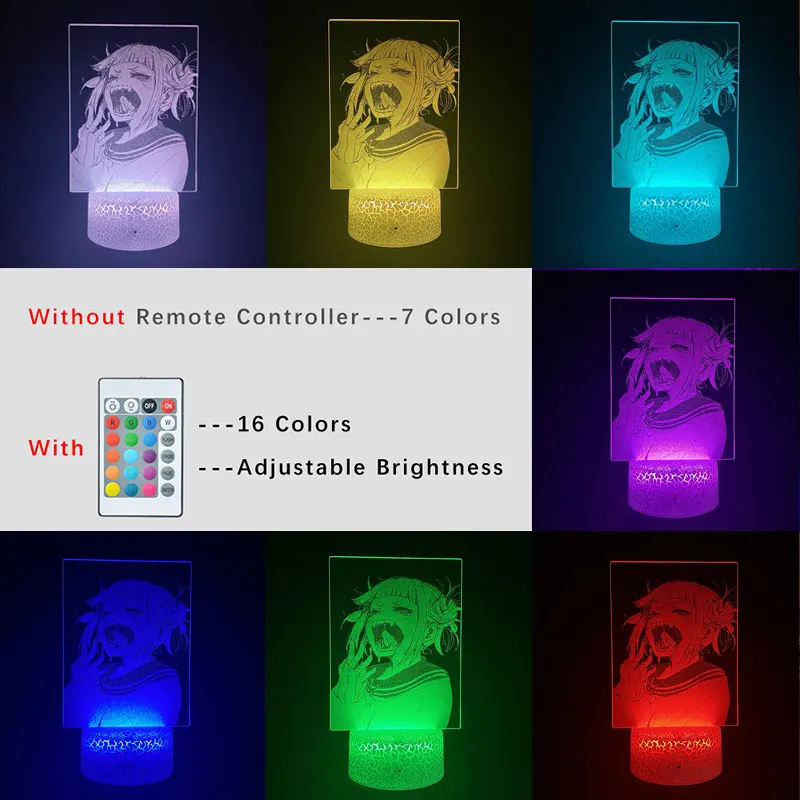 Лампа с 3d-изображением химико Тога, фигурка, ночник для детской спальни, Декор, изменение цвета, контроль, уникальный подарок для фаната моя геройская академия