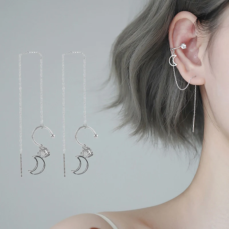 Женские серьги-гвоздики с длинной кисточкой, серьги в форме Луны, б...