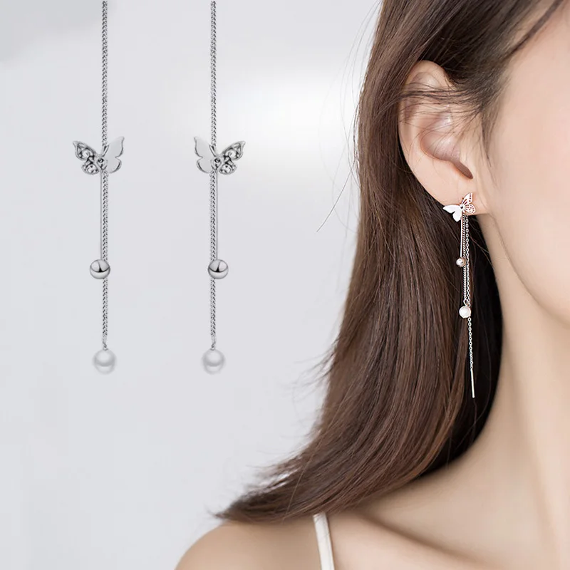 2021 минималистичные длинные серьги с кисточками для женщин, серьги-подвески с бабочкой, искусственным жемчугом, Луной и кристаллами, ювелирные изделия для девушевечерние женщин