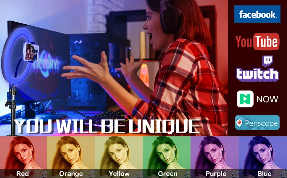 [Лучший светильник до сих пор] кольцевой светильник RGB в дополнение к белый светильник, теплый светильник и естественный светильник, традиционный кольцевой светильник s, он также имеет 16 смешивать цвета RGB режимы с 1 Быстро мигает режим, 10 уровней яркости затемнения, подходит для различных сценариев, независимо от того, это, видеозапись, фотография, макияж, вечерние, Или социальные сети, такие как TikTok facebook, youtube, мощный светильник ing, и меняет цвета функции, 10 дюймов RGB кольцевой светильник может удовлетворить все ваши потребности