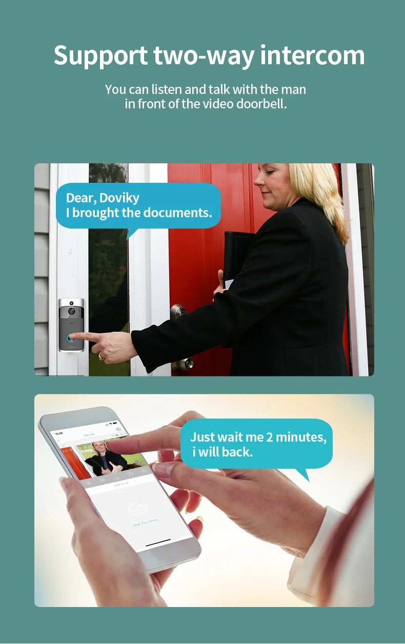 Независимо от того, где вы находитесь, пока кто-то нажимает кнопку, беспроводной звонок сделает звук «ding-dong», чтобы напомнить вам. Вы также можете поговорить с ним напрямую через приложение для телефона.