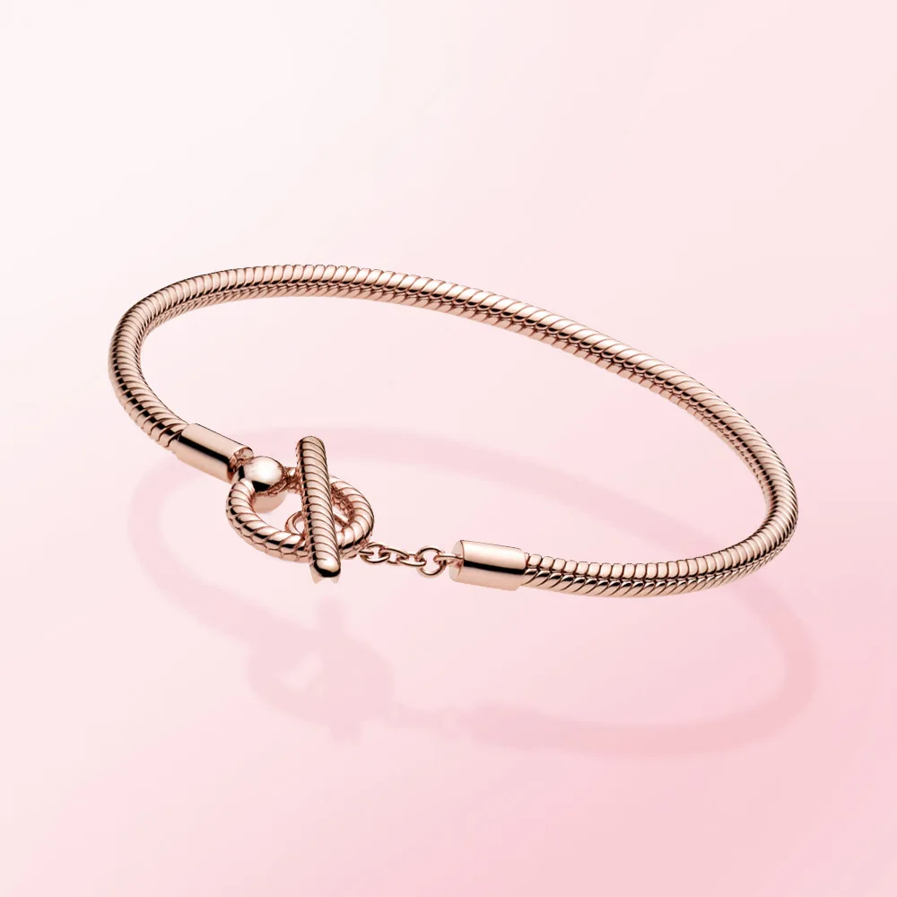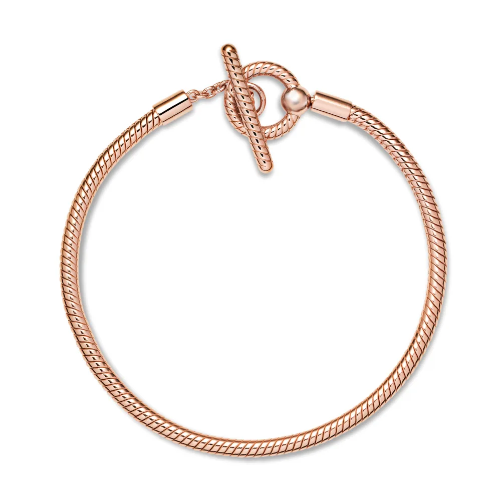 925 стерлингового серебра моменты с центральным ремешком в виде буквы т змея цепи браслет из розового золота браслет очарование для женщин браслет, ювелирное изделие, подарок