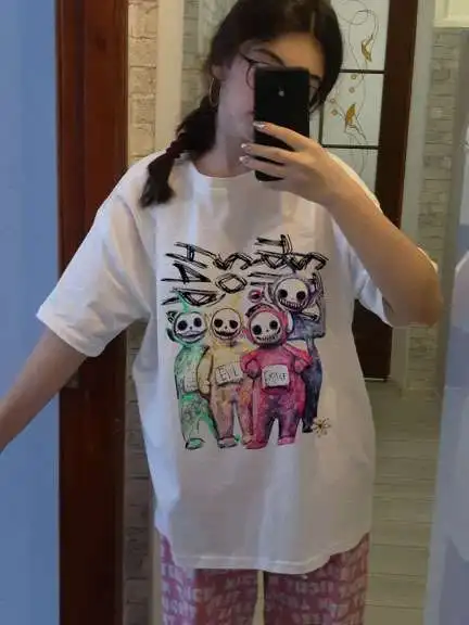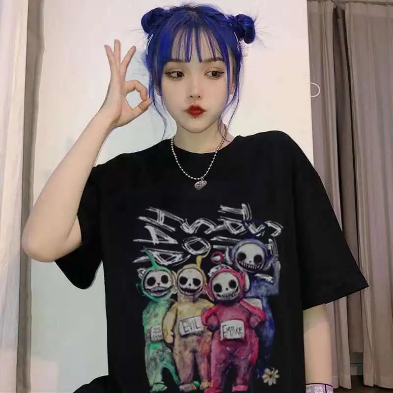 Женская забавная футболка, летний топ с принтом в Корейском стиле Харадзюку, футболка большого размера