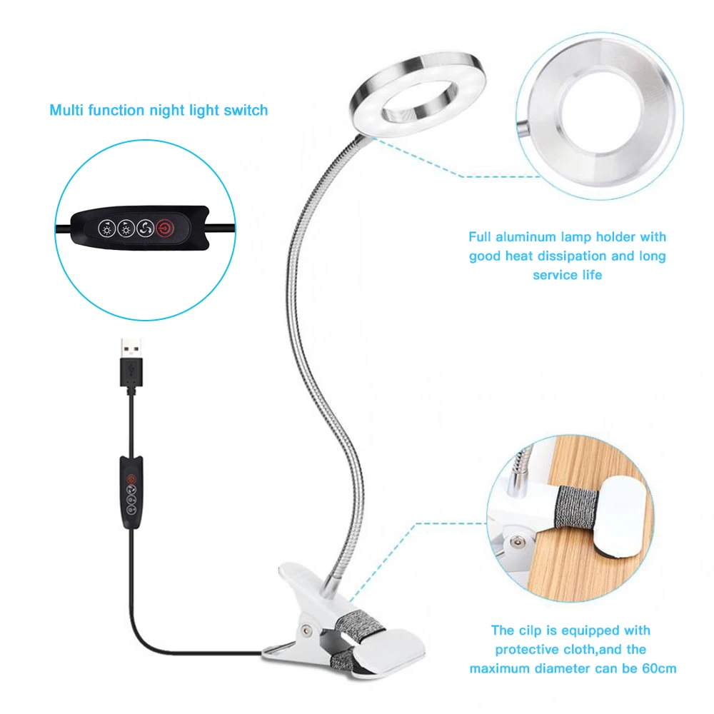 Обзор:Эта настольная лампа с защитой для глаз питается от USB, защищает глаза и полностью гибкая. С помощью зажимной конструкции вы можете зажать его прямо там, где вам нужно. Удобный светильник и желтый светильник регулируются. Его можно использовать дома, в офисе, в салоне красоты и т. Д.Особенности:Используется энергосберегасветодиодный светильник регулируемый светильник желтый светильник), без мерцания, без излучения, защита глаз.Кронштейн лампы можно свободно сгибать, вы можете гибко регулировать высоту и направление лампы.Алюминиевая головка лампы хорошо отводит тепло и эффективно продлевает срок ее службы.Конструкция разъема USB делает его более удобным в использовании. Вы можете подключить его на компьютере, power bank, адаптере и т. Д.Зажим на дне светильника облегчает прочное крепление на столе/кровати.Его можно использовать дома, в офисе, в салоне красоты и т. Д. Подходит для чтения, татуировки, маникюра, наращивания ресниц и так далее.Характеристики:Тип: настольная лампаМатериал головки лампы: алюминийМатериал зажима: металлНоминальная мощность: 7-8 ВтИсточник светильник: 2835Питание: USBВходное напряжение: 5 ВЦвет: серебристый, черный (по желанию)Комплектация:1 * настольная лампа