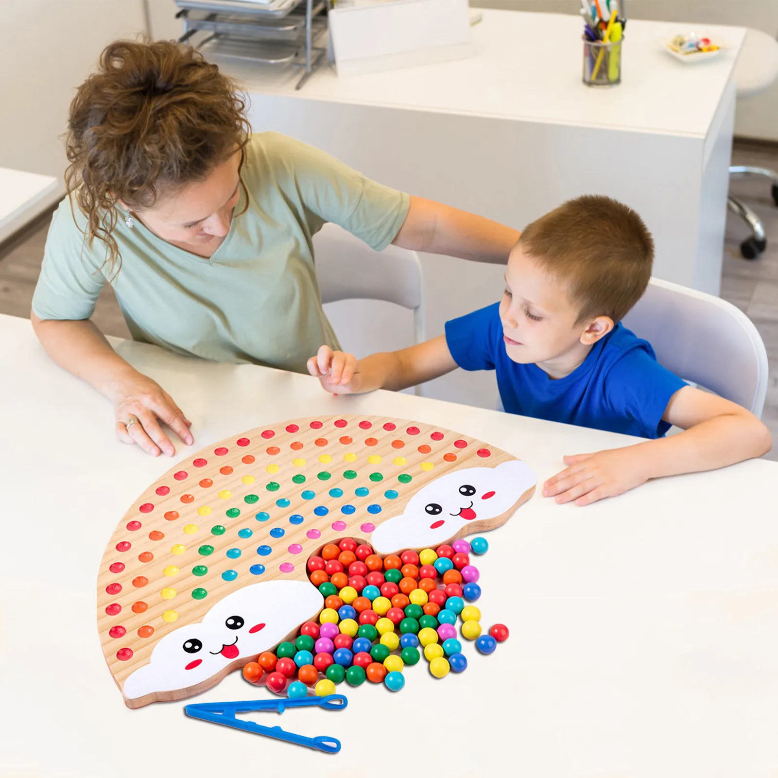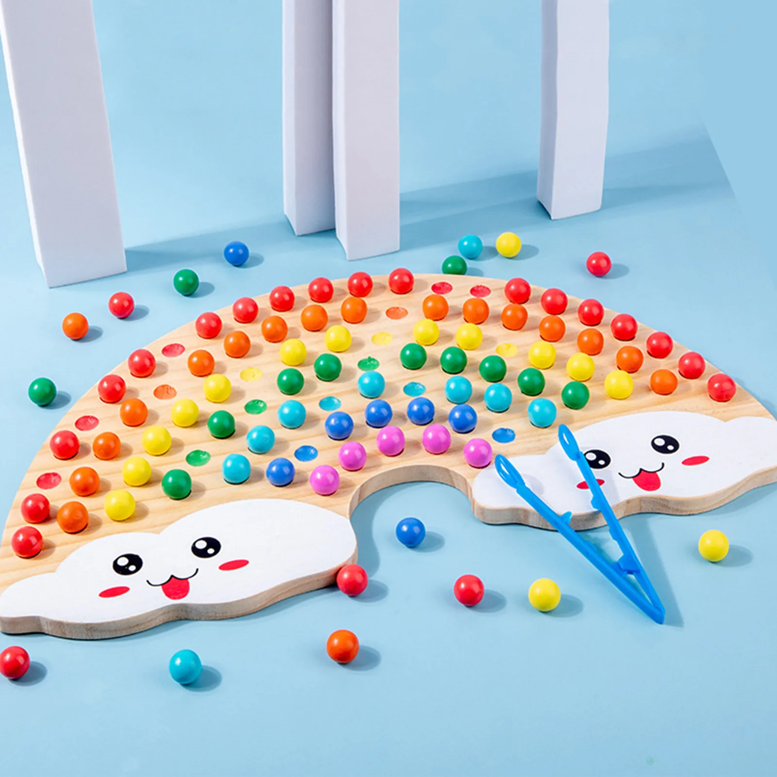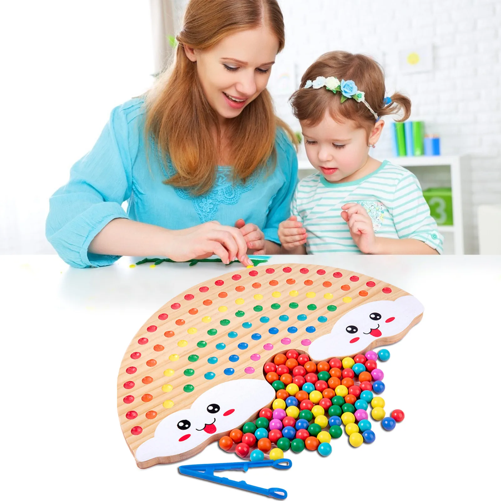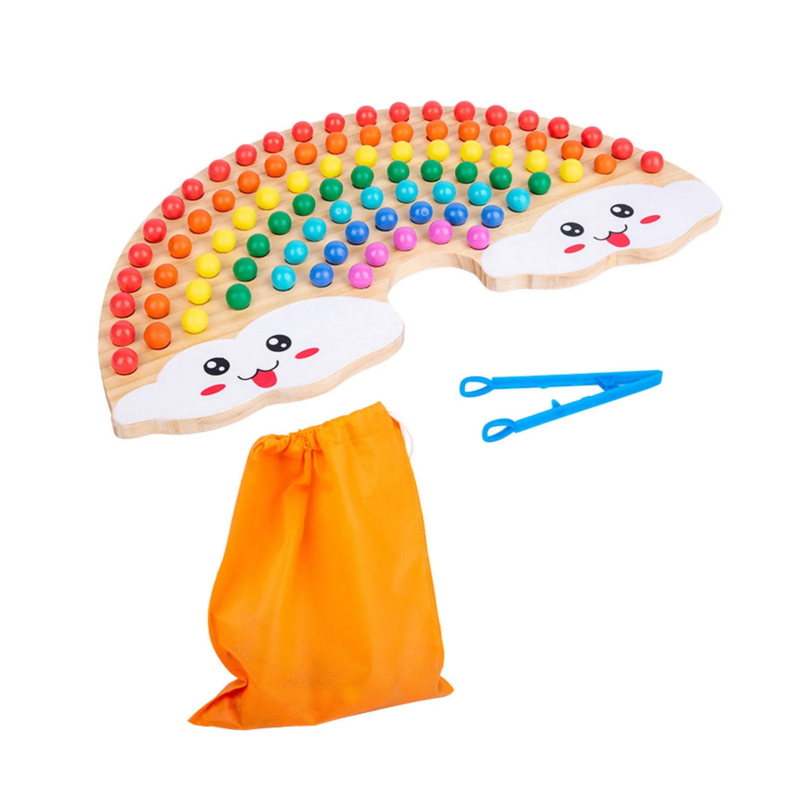 Образовательная деревянная головоломка весело Радуга клип бисер для игр Монтессори в образовательных игрушек Цвет сортировки сенсорная доска инструмент
