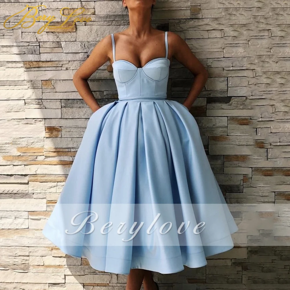 Светильник-голубое платье для встречи выпускников 2021 атласное пла...