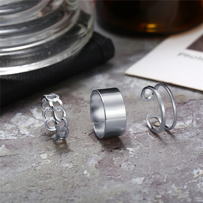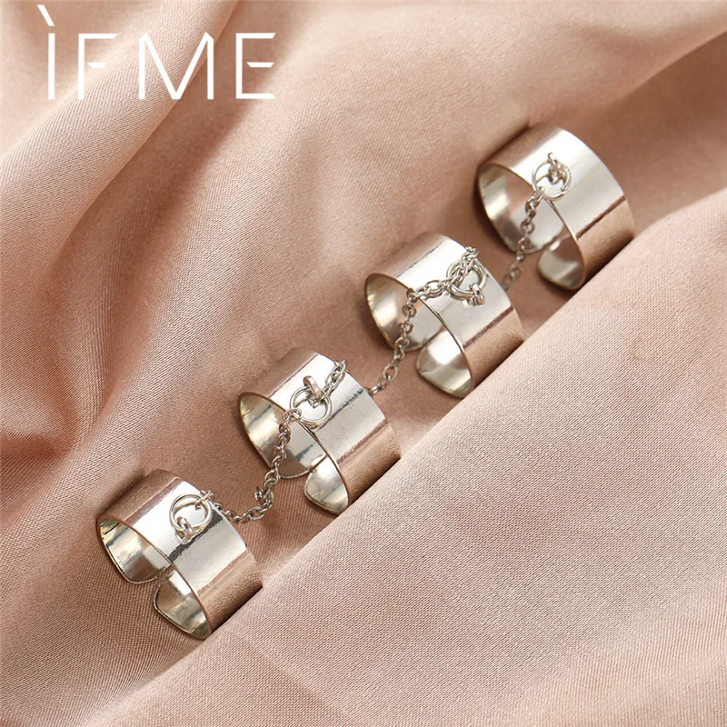Набор Колец IF ME в стиле панк для женщин и девушек, регулируемое металлическое кольцо-цепочка в минималистичном стиле, Ювелирное Украшение под серебро