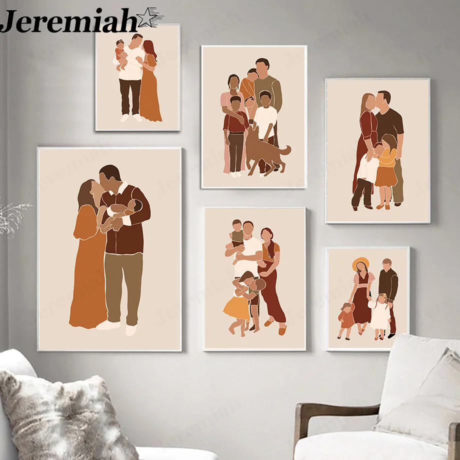 Картина на холсте Счастливая семья в скандинавском стиле, постер с родителями и детьми, картина с надписью Love, современное домашнее украшение, без рамки, подарок