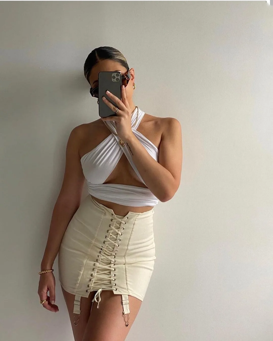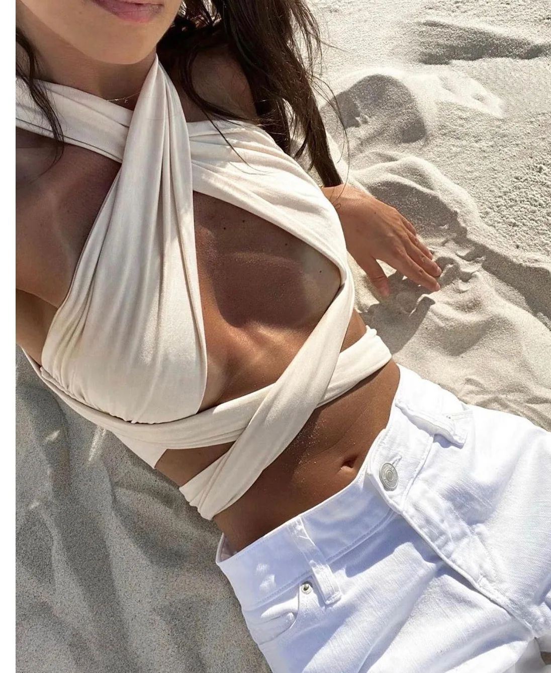 Women 2021 Summer New Solid Crop topsStrapless Cross-up Tank Tops