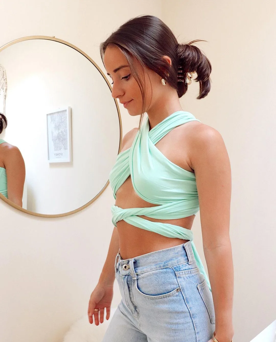 Кроп-Топ женский с лямкой через шею, модный бандажный Топ без рукав...