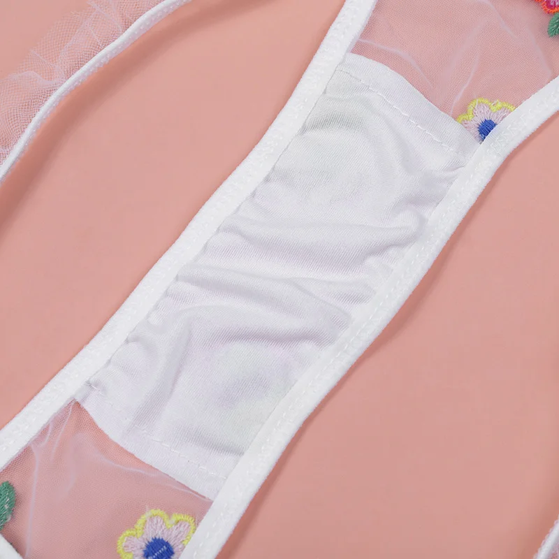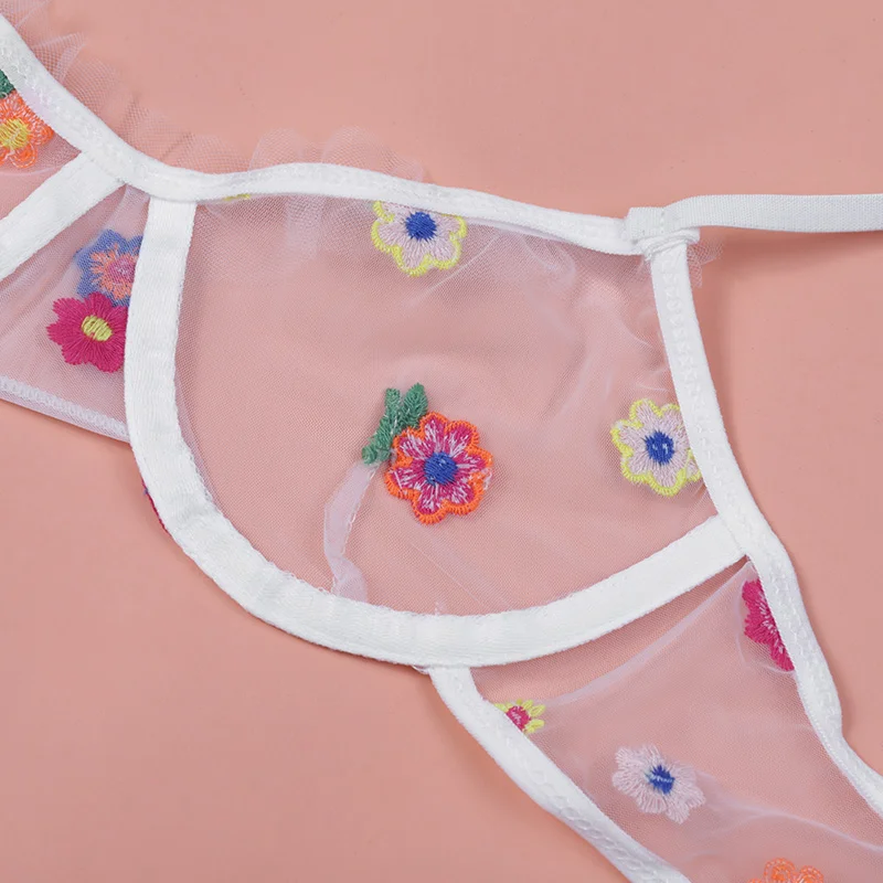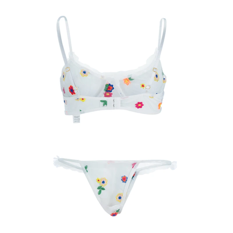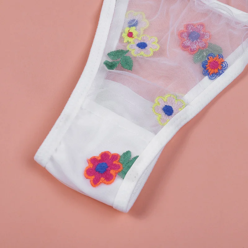 Бюстгальтер с цветочной вышивкой, стринги, нижнее Белье для сна, женское нижнее белье