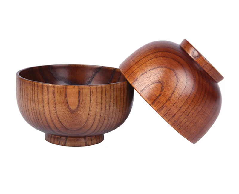 Деревянная миска для рисового супа в японском стиле, Салатница, контейнер для еды, Большая маленькая миска для детей, деревянная посуда, 1 шт.