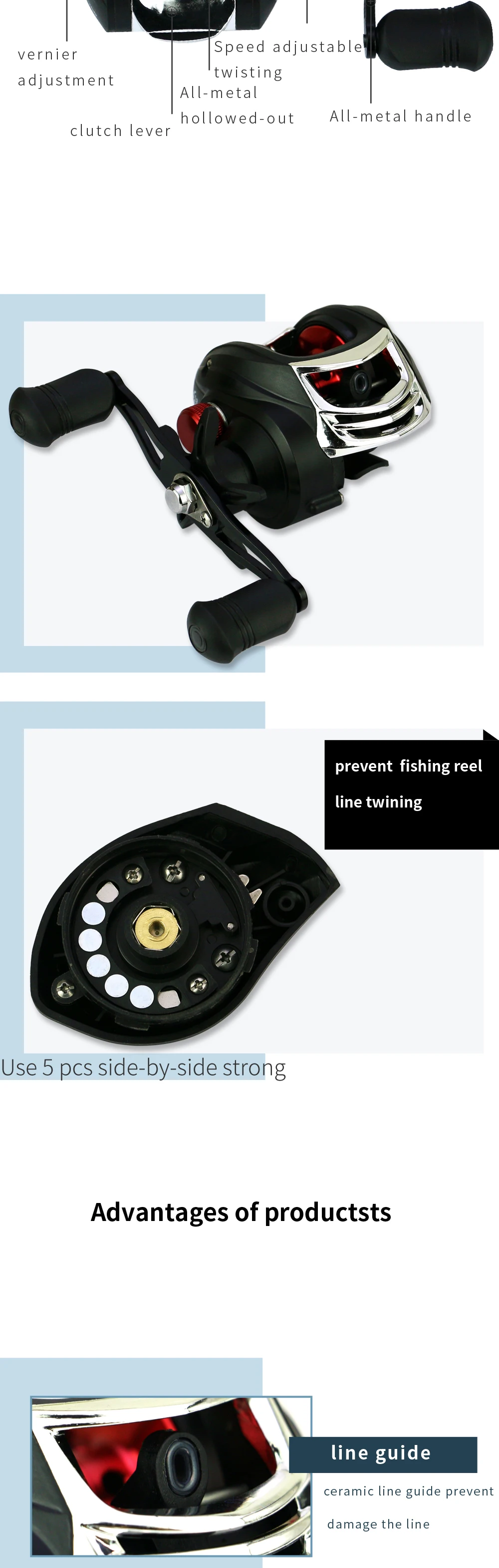 ☆Класс турнира-новые катушки для ловли приманки имеют современные тормоза с быстрым, простым в настройке надежным тормозом и магнитной тормозной системой для максимального управления литьем.