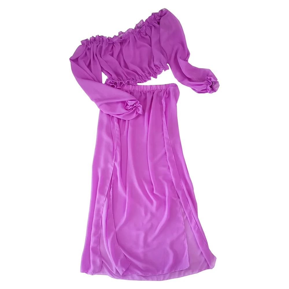 Женский однотонный топ с открытыми плечами и длинными рукавами, юбк...