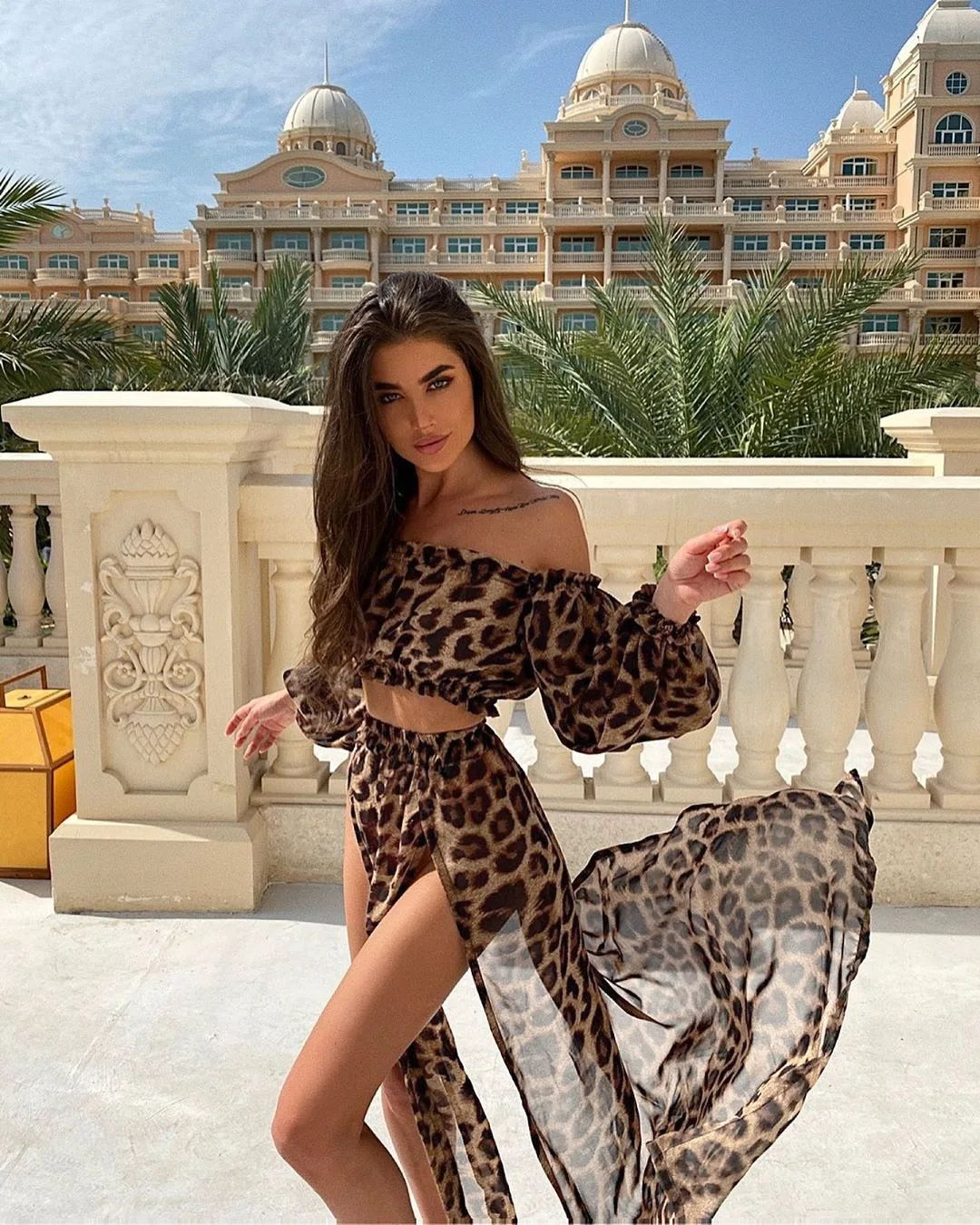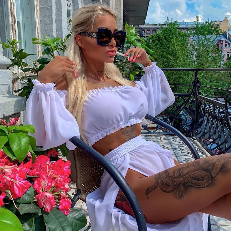 Женская юбка для отпуска, сексуальный топ с длинным рукавом, шифоно...